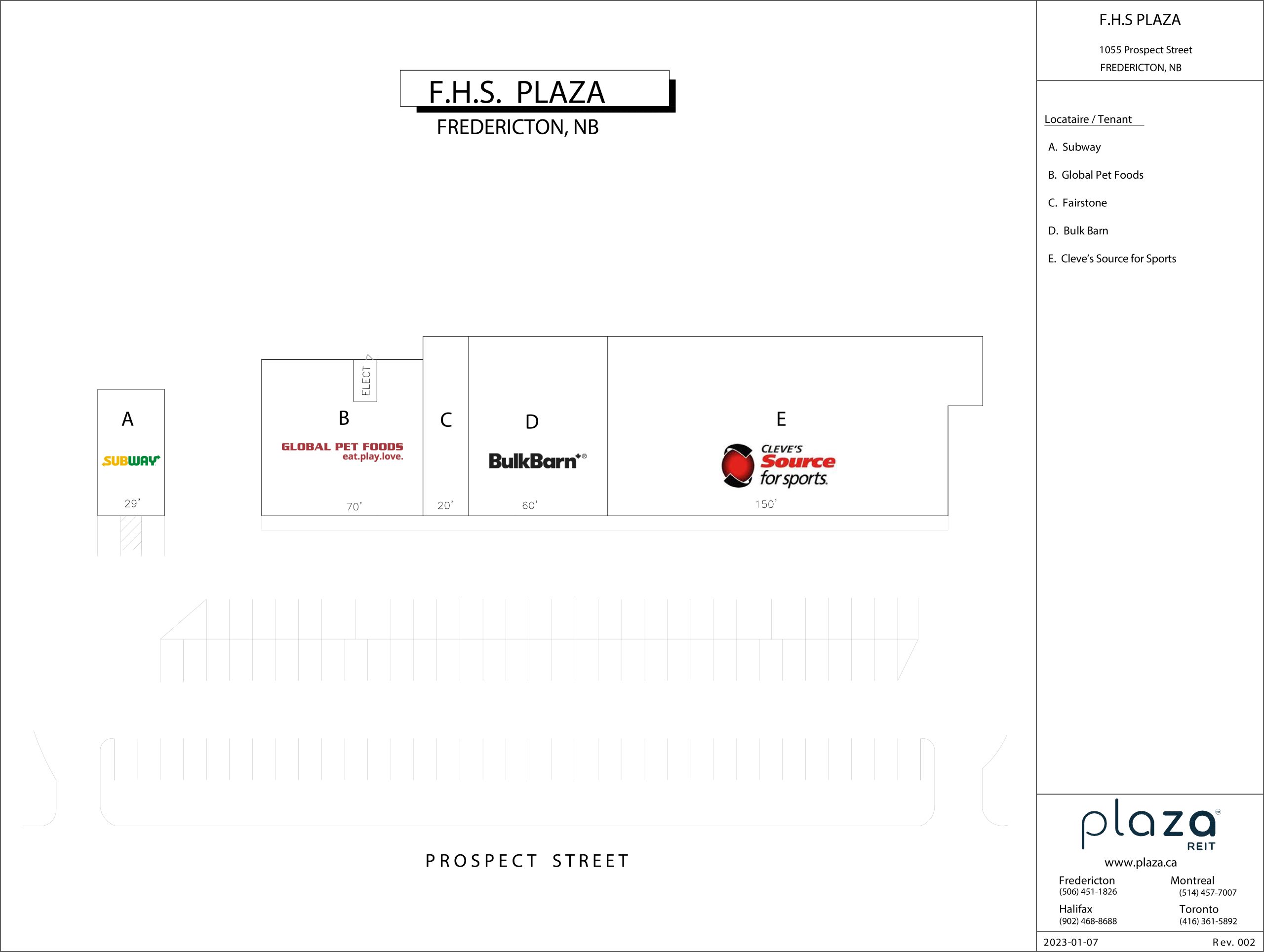 Le FHS Plaza est situé au centre de la zone commerciale de Fredericton. Ce secteur comprend Uptown Centre, Smythe Street Plaza, Regent Mall et Corbett Centre.