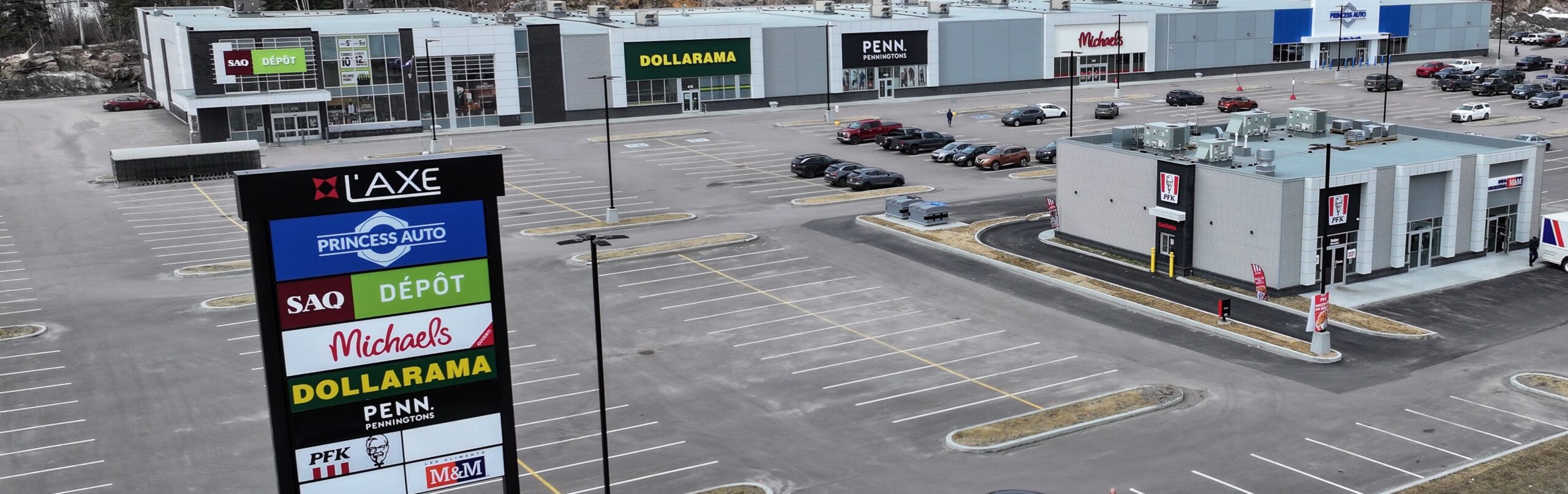 L’AXE is an new development located at the entrance of Saguenay-Lac-St-Jean at the intersection of 2 major arteries; boul. Talbot and boul. Royaume.