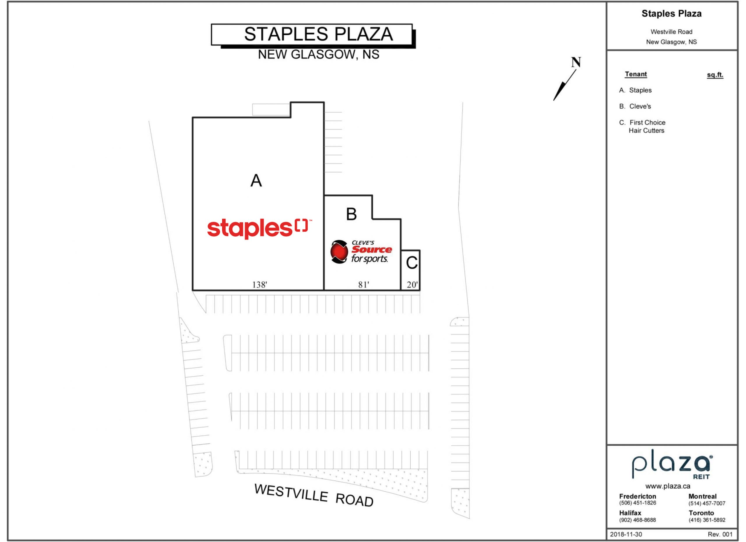 Staples Plaza in New Glasgow is located across the street from Walmart and Canadian Tire, and adjacent to Atlantic Superstore.