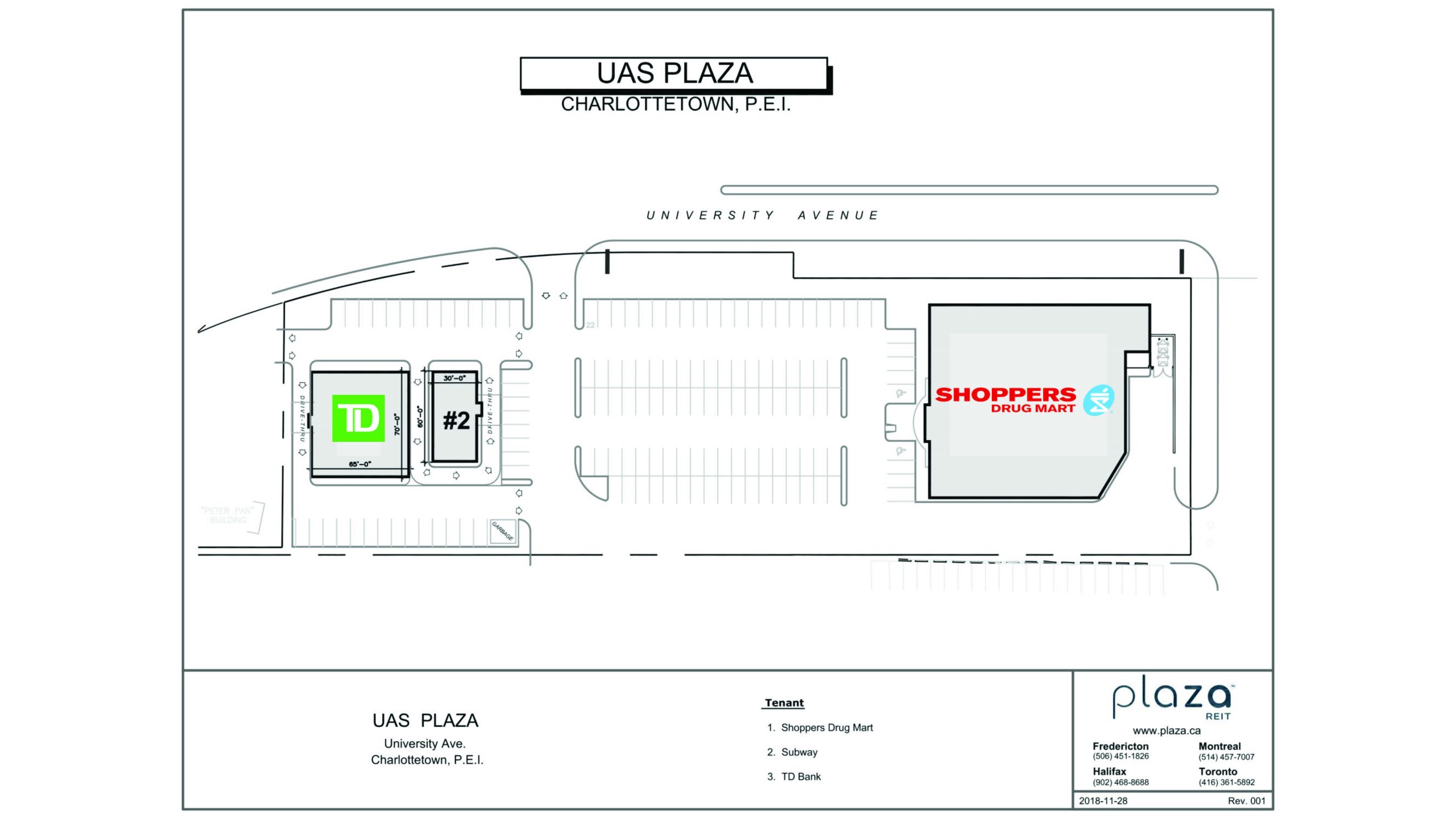 This Shoppers-anchored site features three prominent pads across the street from Charlottetown Mall.